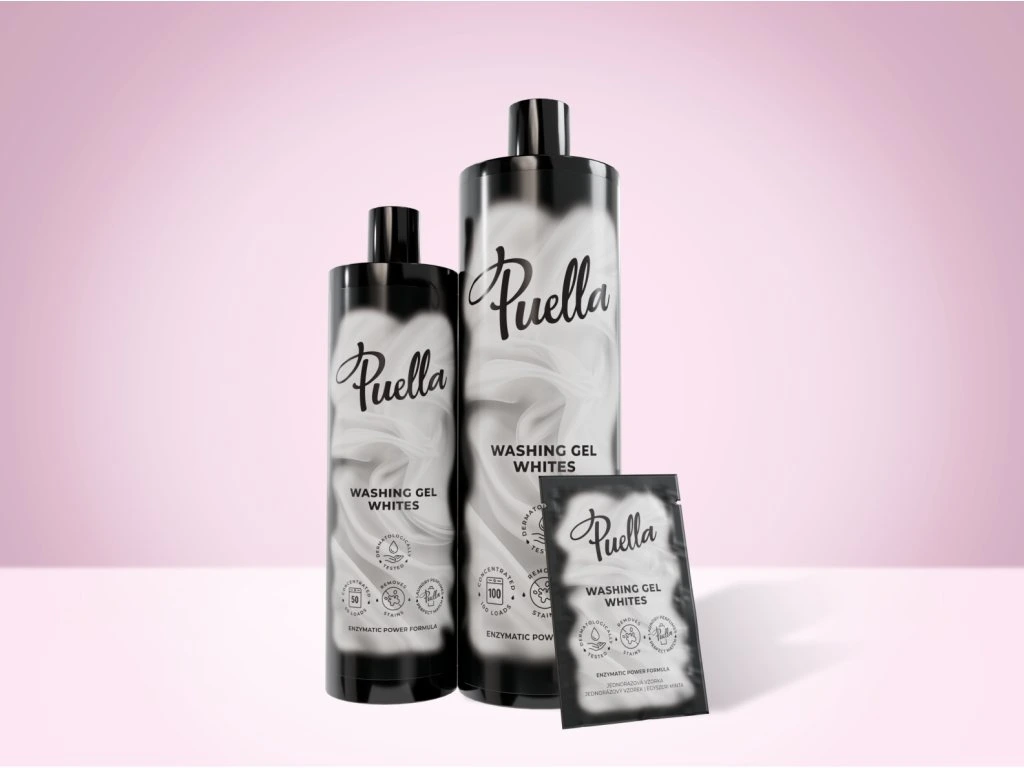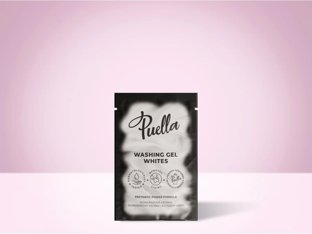 Mantenete il bianco e la freschezza del vostro bucato con il nuovo detersivo liquido Puella per capi bianchi.