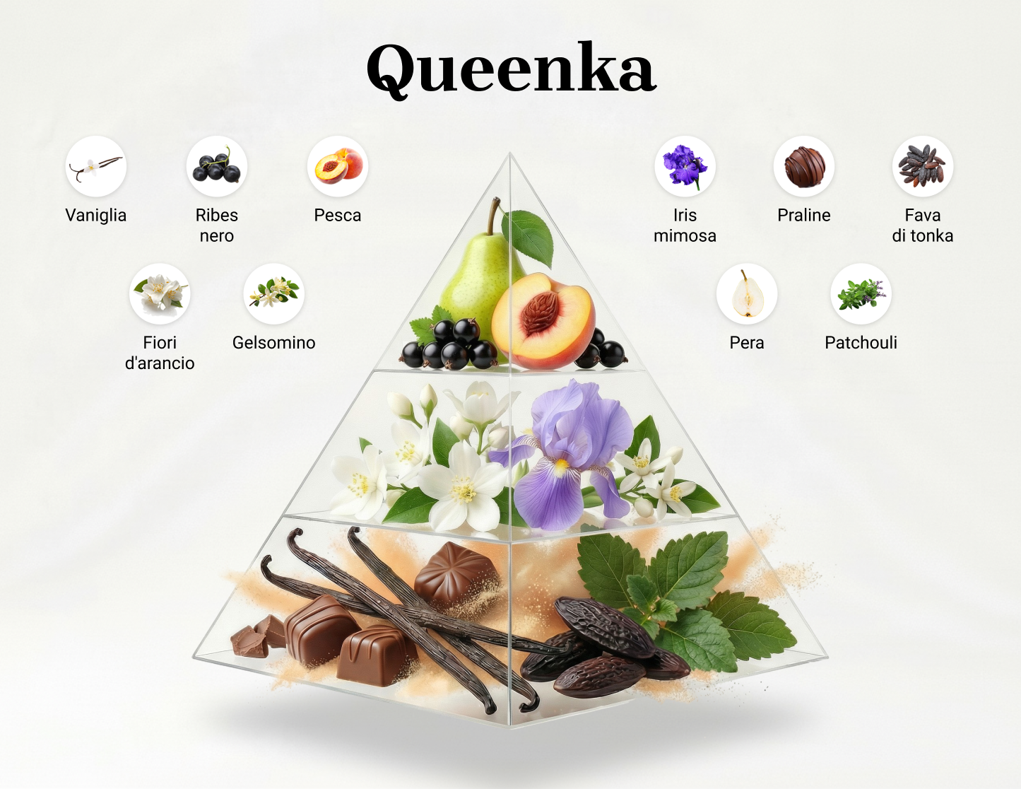 Queenka è sinonimo di dolcezza ed eleganza nelle fragranze. È una fragranza che regala sensazioni gioiose e positive a ogni lavaggio. Lasciatevi trasportare nel mondo dei dolci profumi e dell'incantevole aroma che si diffonderà dal vostro bucato.