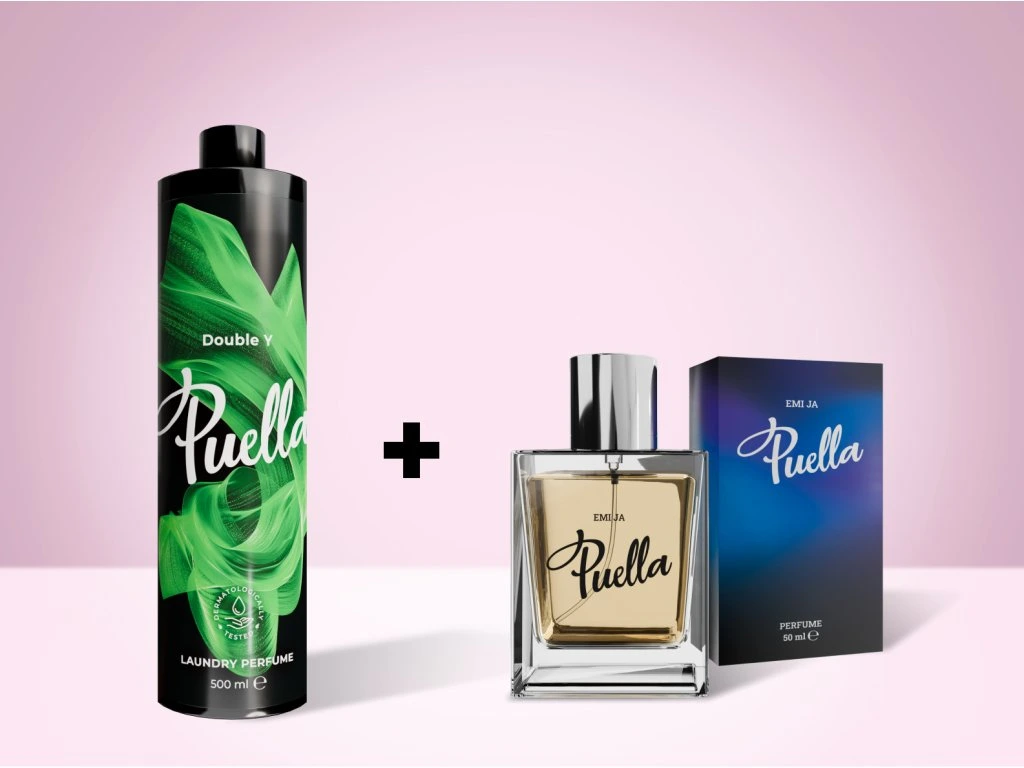 500 ml profumatore per bucato e 50 ml profumo per il corpo – l’unione tra la freschezza del bucato e la vostra fragranza personale.